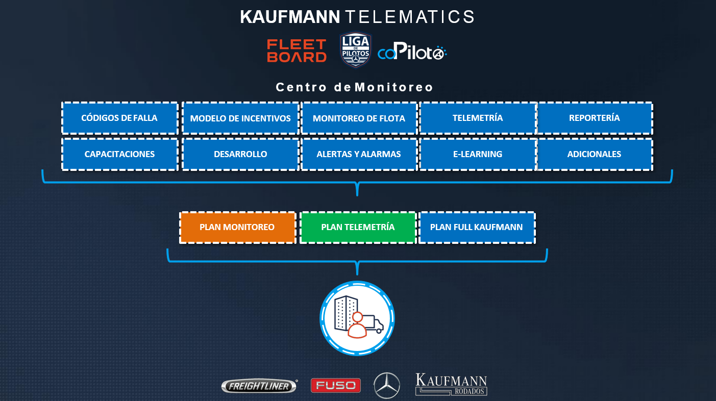 Kaufmann ha desarrollado un Servicio Telemetría y Gestión Activa de Flotas con el objetivo de incrementar la eficiencia en cada punto de la cadena de valor del cliente, para lograr un incremento directo en la productividad, reduciendo los costos operacionales y emisiones contaminantes.