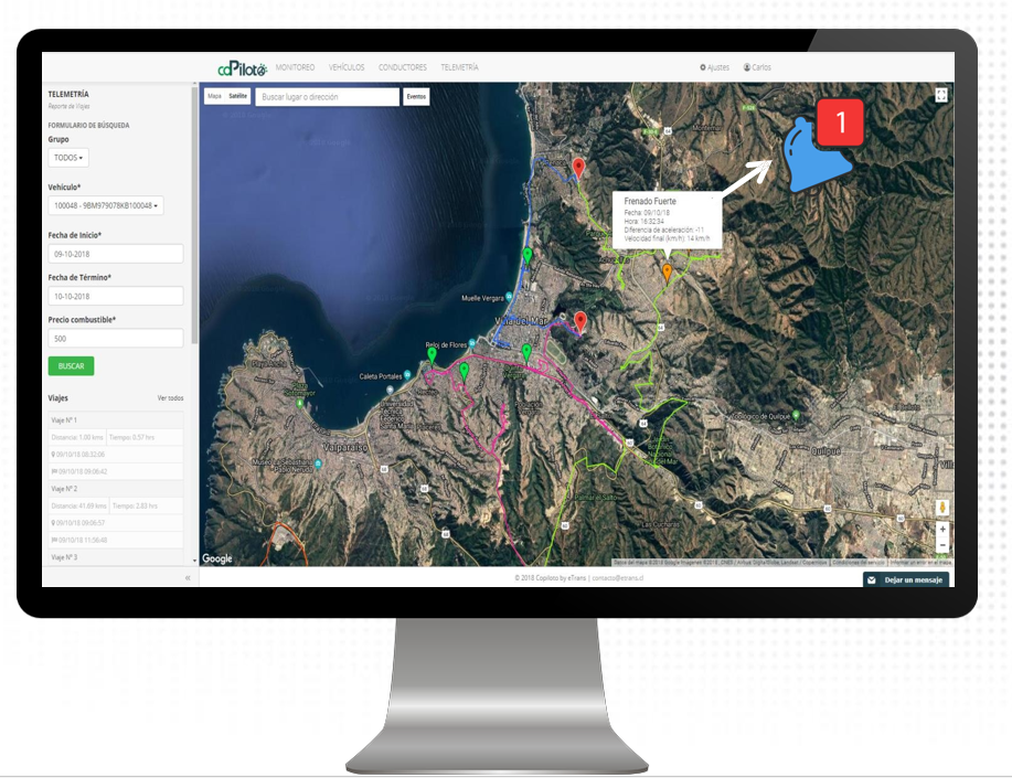Máximo rendimiento y eficencia: Con la nota de estilo de conducción podrás gestionar a los conductores para alcanzar el mejor rendimiento, reducir desgaste innecesarios y promover la seguridad en cada trayecto.